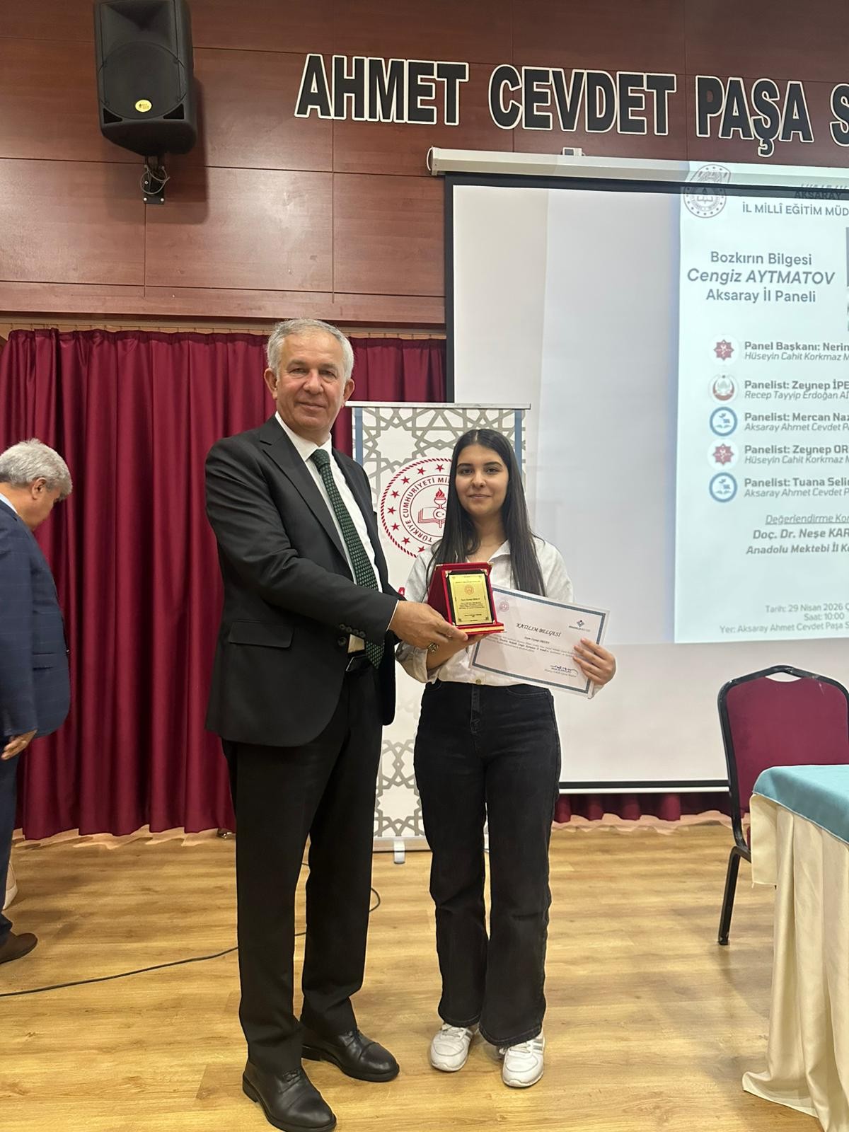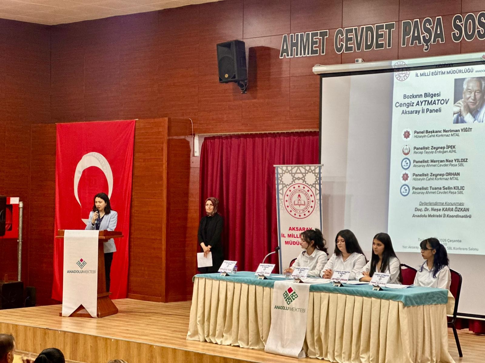Aksaray İl Millî Eğitim Müdürlüğü Anadolu Mektebi İl Koordinatörlüğü bünyesinde 29 Nisan 2026 tarihinde Aksaray Ahmet Cevdet Paşa Sosyal Bilimler Lisesi Konferans Salonunda Cengiz Aytmatov İl Paneli düzenlendi.