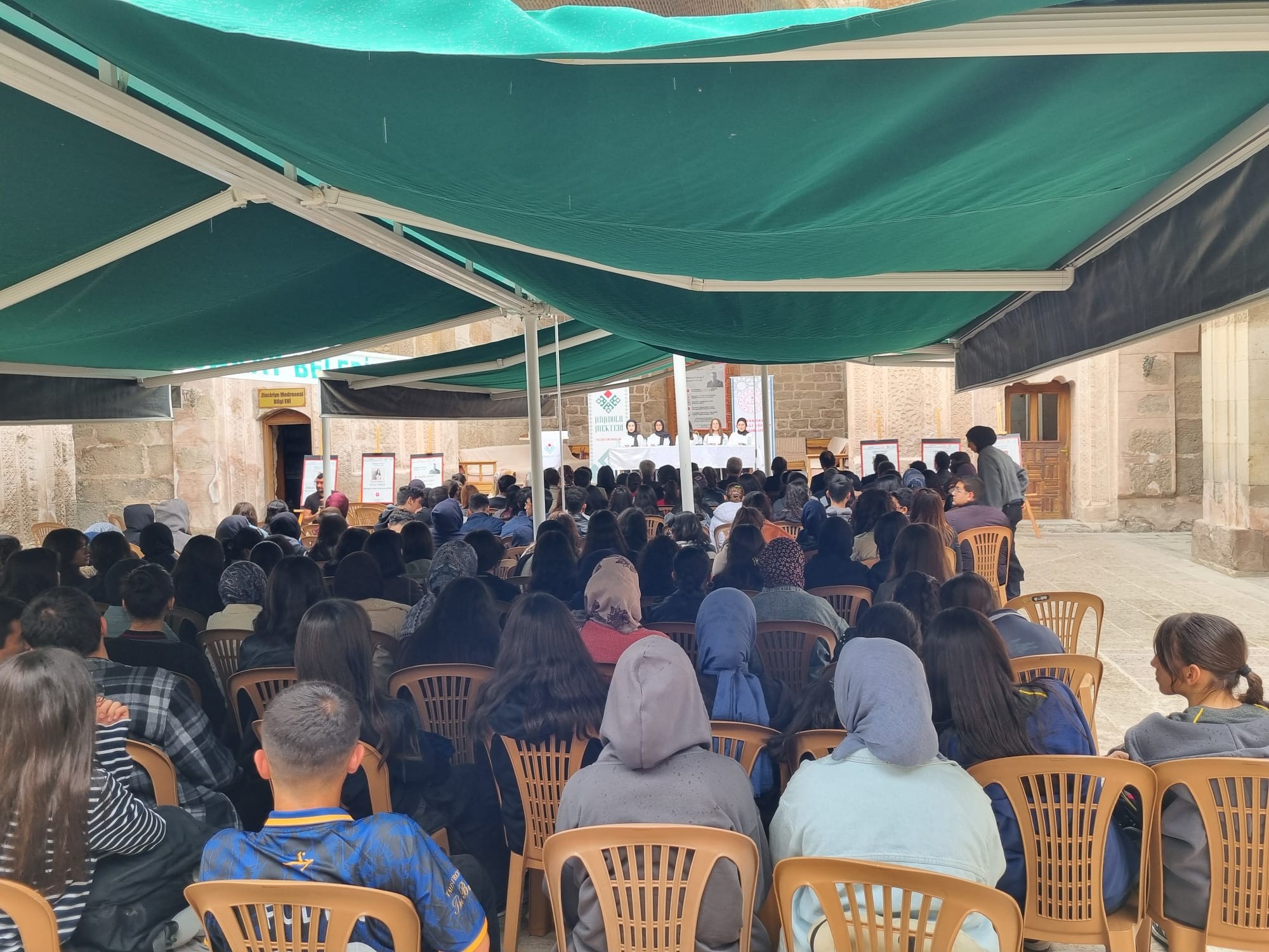 Tarihî Zinciriye Medresesi’nin ev sahipliğini yaptığı panele saygı duruşu ve İstiklal Marşı’nın ardından açılış konuşmalarıyla başlandı. Aksaray Belediye Başkan Vekili Yakup Kadri Perek, Aksaray İl Millî Eğitim Müdür Yardımcısı Murat Günaydın, Şube Müdürü İsmail Sarıkaya, İl Koordinatörü Neşe Kara Özkan, çok sayıda öğretmen ve öğrencinin katılım sağladığı program ilgi ile izlendi.